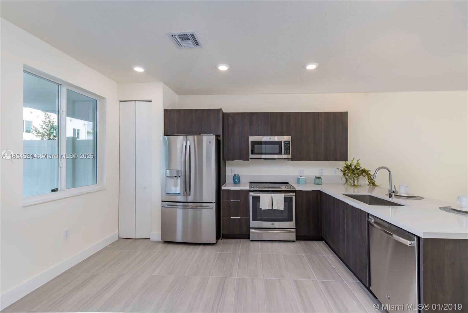 Spacious unit at Landmark at Doral. This 3 bedroom 2.5 bathroom townhouse has an open area with kitchen, living and dining perfect for entertaining. The modern kitchen features a deluxe stainless steel appliance package and quartz countertop. Walk in closets and master bathroom with dual sink and large shower are very spacious. The home is equipped with the most up to date technology, Wi-Fi ready. The community offers resort style amenities, with tennis courts, pool, and gym. Various schools as well as parks in the area.