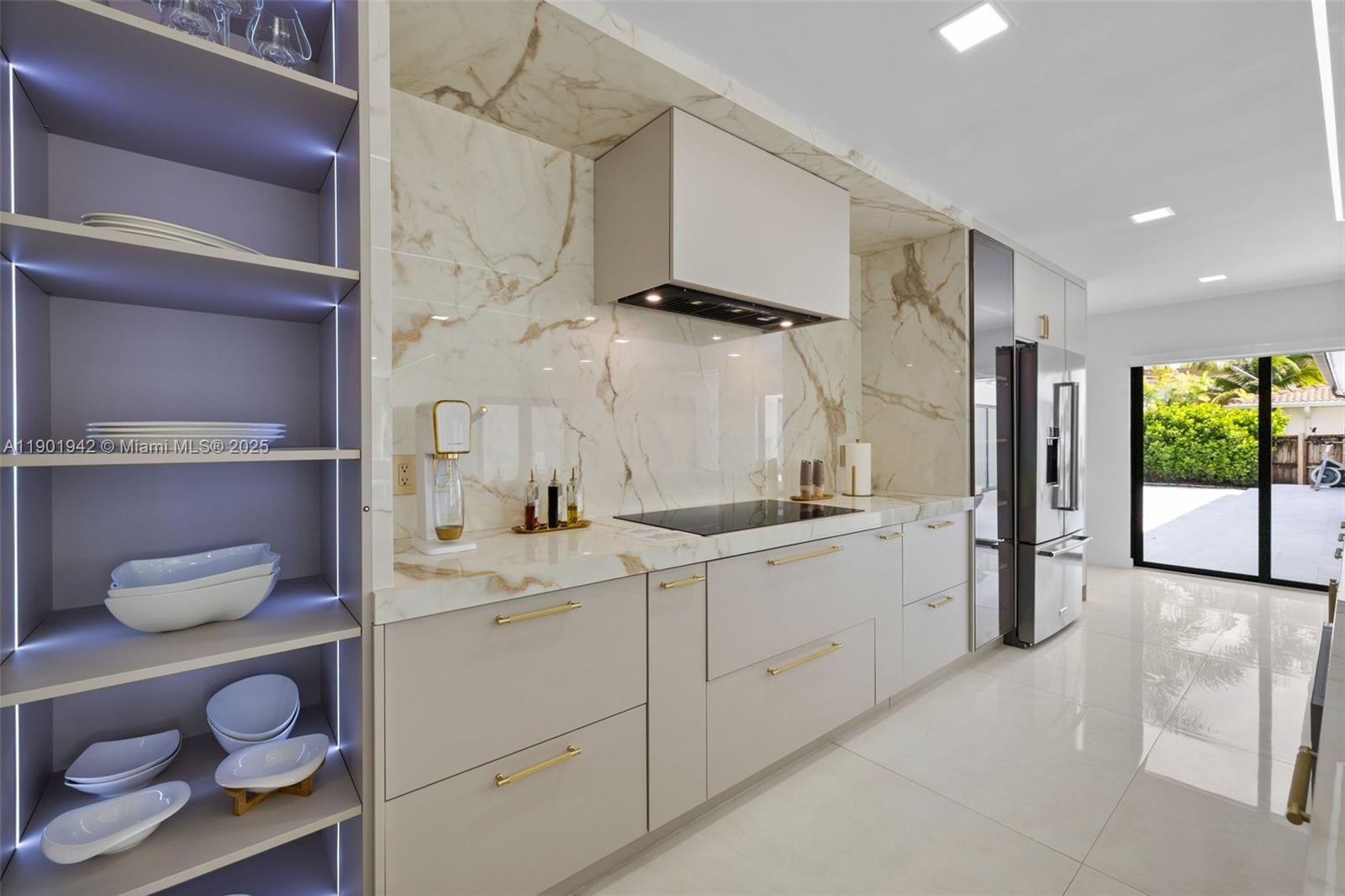 Modern Luxury Residence in Hollywood Lakes! Step into this fully furnished smart home featuring over $600,000 in upgrades. Designed for elegance and comfort, it offers impact windows and doors, porcelain Spanish tile flooring throughout, and a heated pool with outdoor jacuzzi surrounded by lush, illuminated landscaping. Inside, enjoy a state-of-the-art smart system with voice-controlled lighting and sound, a 105” theater screen, and a stunning porcelain kitchen with premium appliances and glass cabinetry. The master suite and all bedrooms include custom walk-in closets and spa-inspired finishes. Just minutes from the beach and Downtown Hollywood, this home combines modern design, technology, and coastal sophistication—ready to move in and enjoy the ultimate South Florida lifestyle!!